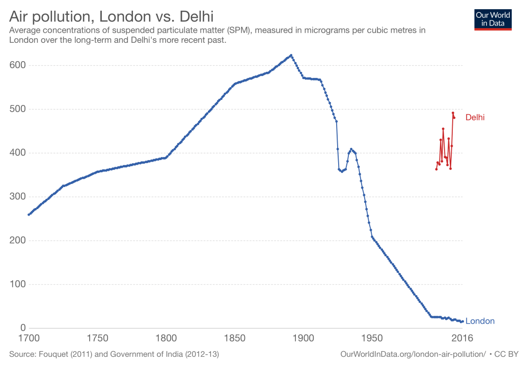 We can see that air quality was the worst during the industrialisation period between the 1800s and the 1900s (Austin and Sugihara, 2013). Long story short, factories were run using power-driven machines aiming to foster economic development (Austin and Sugihara, 2013). This led to the excessive use of fossil fuels. More air pollutants, such as carbon dioxide, were released into the atmosphere. The more air pollutants in the atmosphere, the more heat is trapped in the Earth surface, which amplifies the greenhouse effect. Gradually, global warming is intensified.